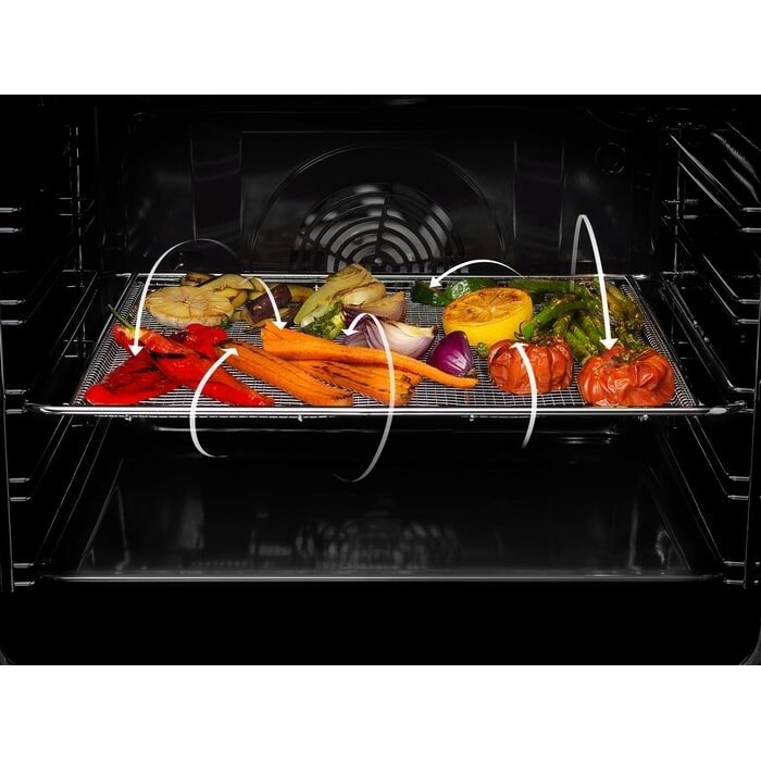Dank der verbesserten Luftzirkulation auf dem Backofenkorb kannst du noch mehr Zutaten in einem Garvorgang zubereiten. Die große Fläche des Backkorbs sorgt dafür, dass die Heißluft noch besser zirkulieren kann, und deine Speisen gleichmäßig von oben und unten erhitzt werden.