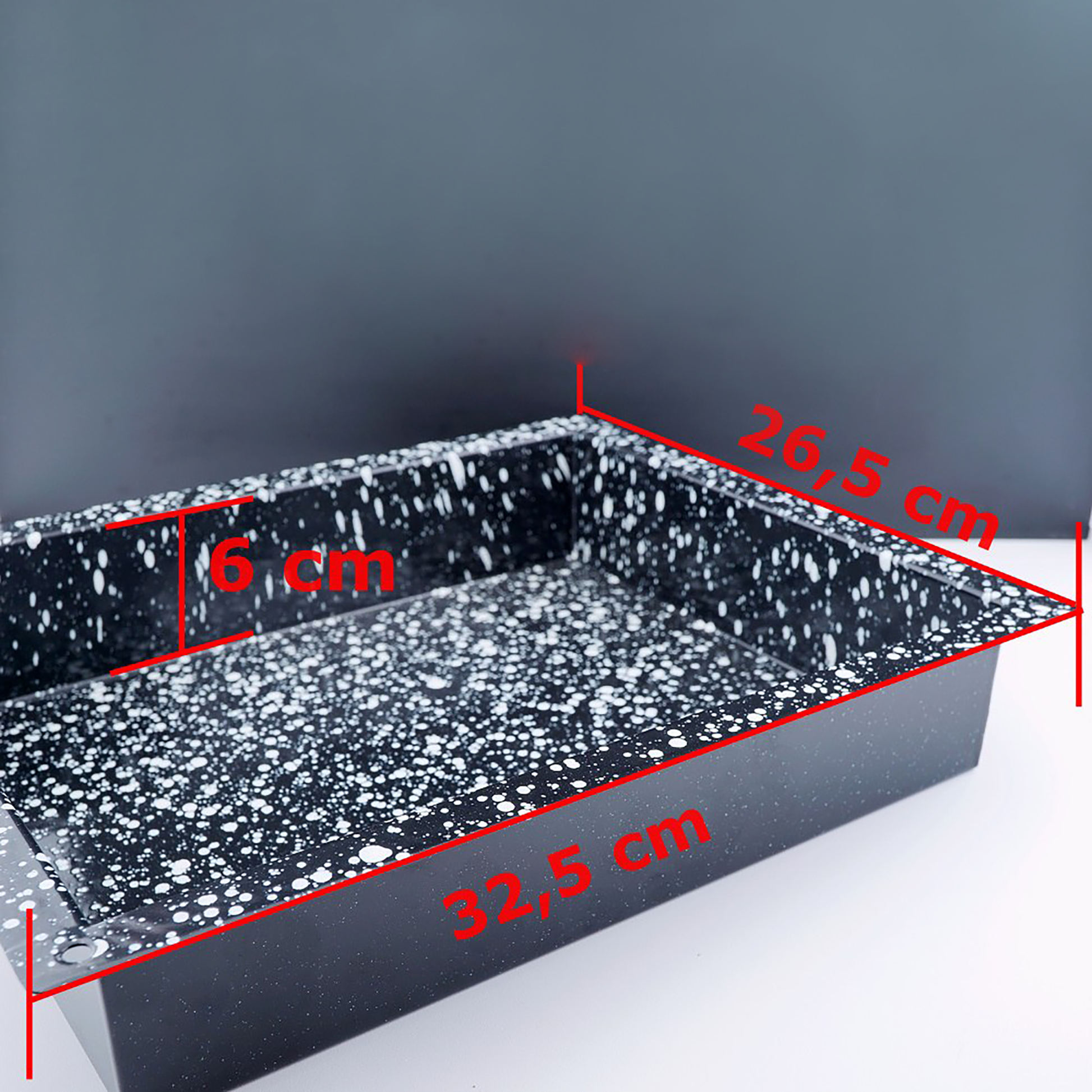 Der Medio granitemaillierte Behälter eignet sich besonders gut zum Backen. Du möchtest deinen Gästen einen leckeren Blechkuchen oder Lasagne anbieten? Kein Problem! Die Ecken sind voll ausgeformt, sodass Sie auch Eckstücke gerade stehen und nicht kippen am Teller. Somit hast Du keinen unsinnigen “Verschnitt” gegenüber abgerundeten Behältern.